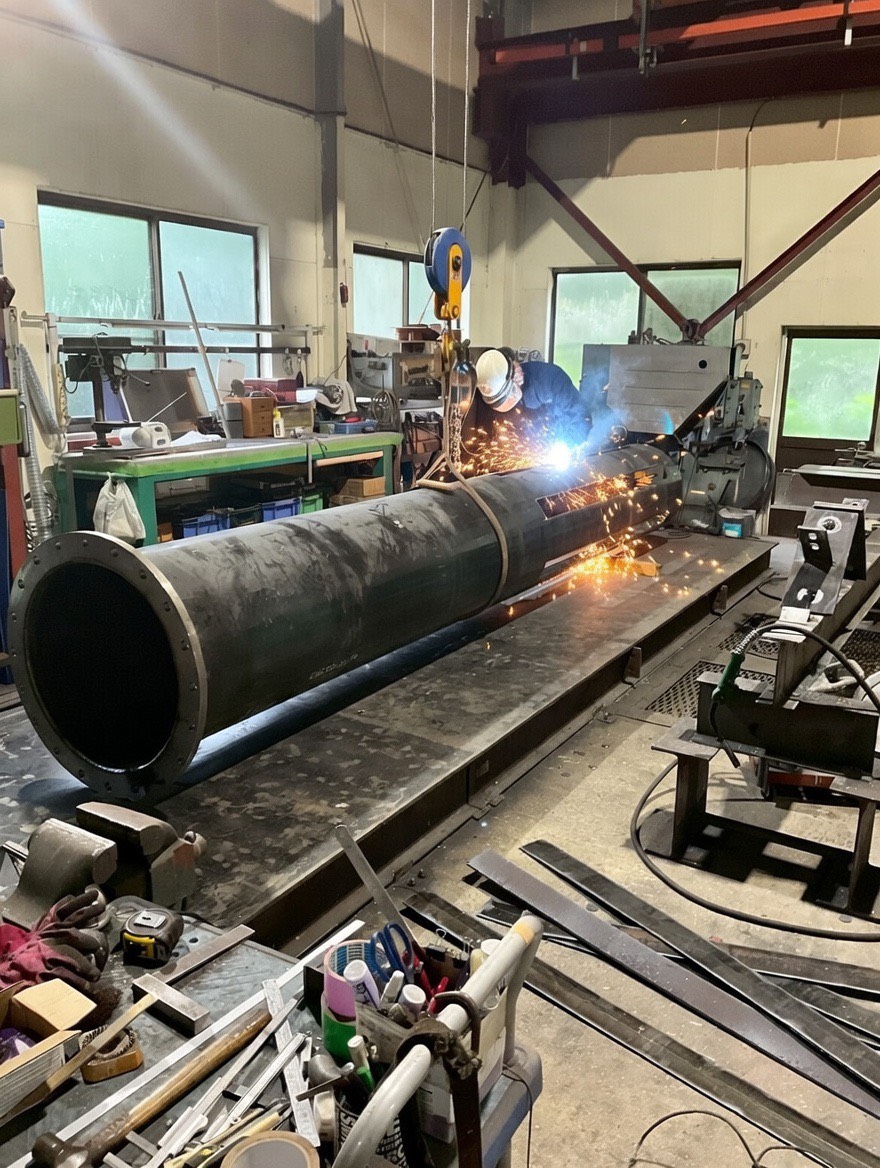 自社工場での鉄骨加工から、現場での取付・建方までを一貫して対応しています。加工段階から現場を見据えて作業するため、精度が高く手戻りも少ないのが強みです。分業では生まれやすい認識のズレを防ぎ、仕上がりまで責任を持った施工を行います。